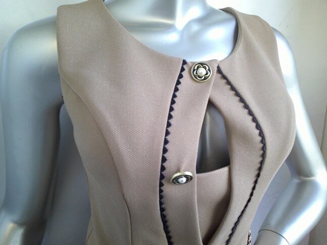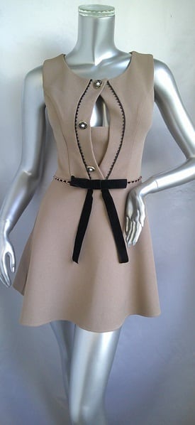 前たてが大きなスリットになっていてちょっぴりセクシーなミニフレアワンピース。ウエストのチェーンベルトとベルベットリボンでかわいらしさもアピール♪ しっかりしたラメ生地はストレッチ感もあり着やすくなっています。