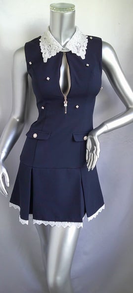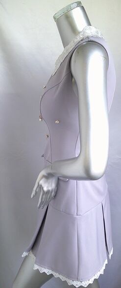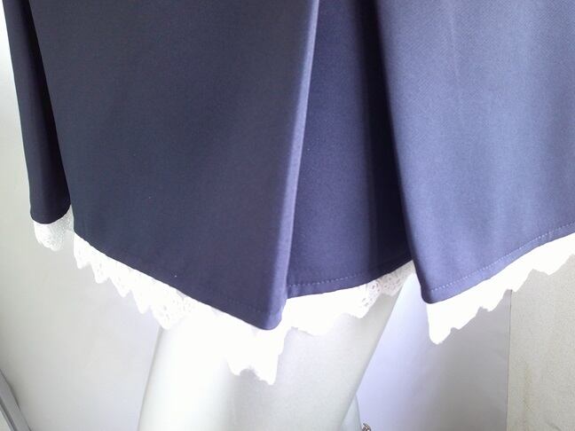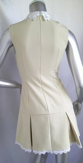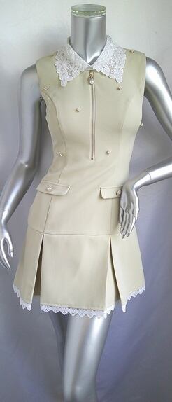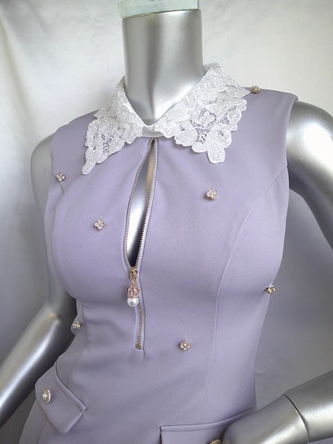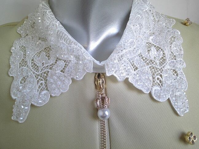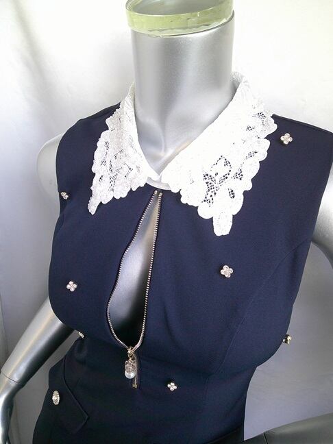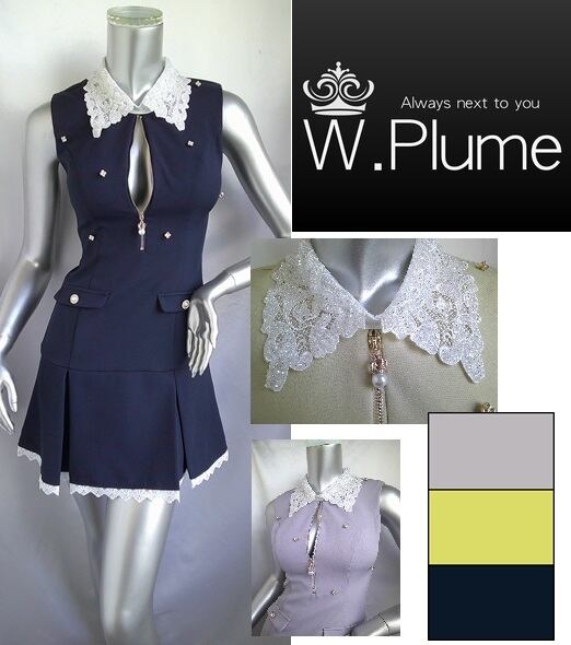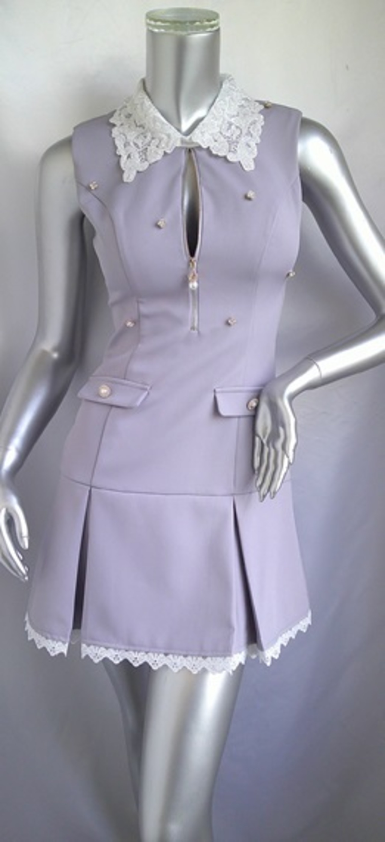 清楚なイメージのキラキラビジュー付き白レース衿ワンピース。前ファスナーを開ければ、がらっと印象が変わります。かわいいだけじゃないアピール可能の万能ワンピース。パーティ、結婚式にも!