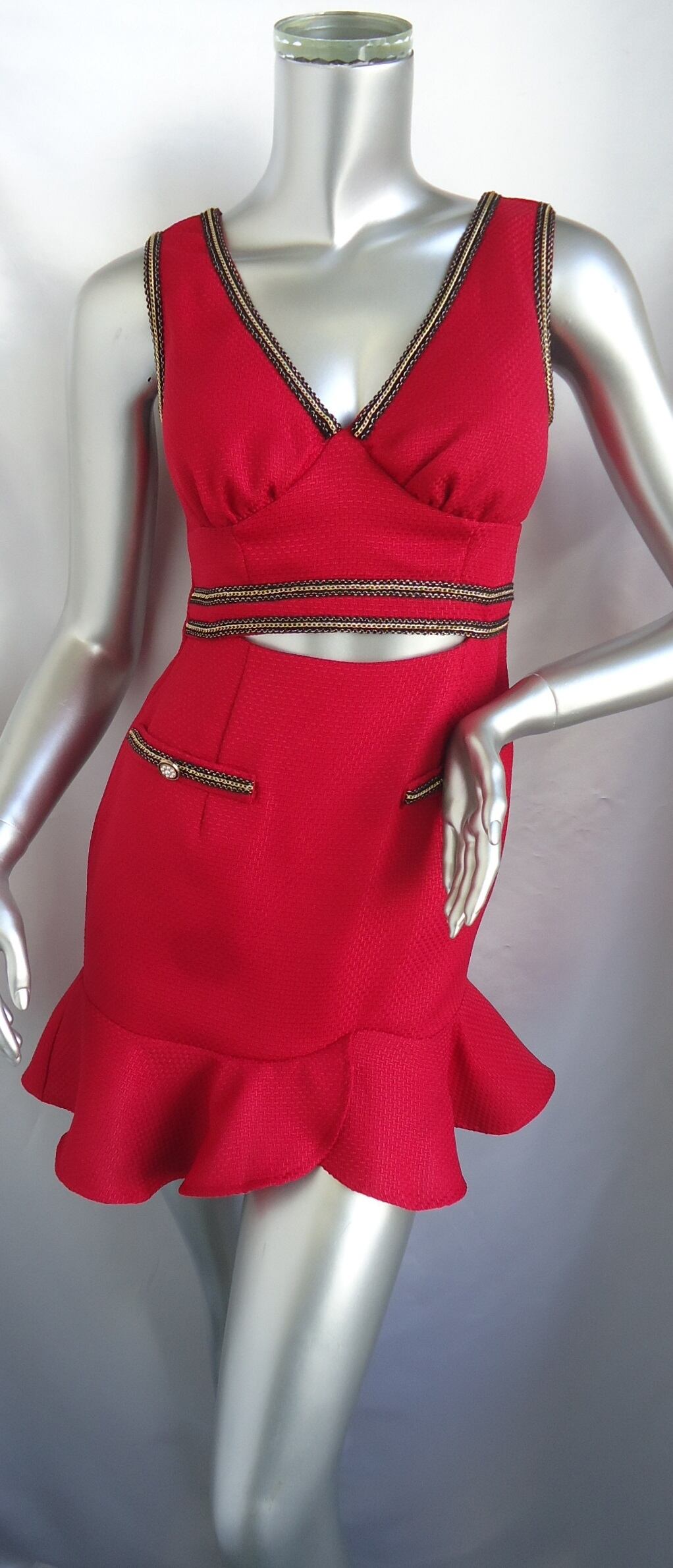 歩くとひらひら踊るように揺れるスカート。セットアップに見えますが後ろコンシールファスナー開きのワンピースです。大きく開いた胸元がアピールポイント。元気いっぱいのあなたへ。