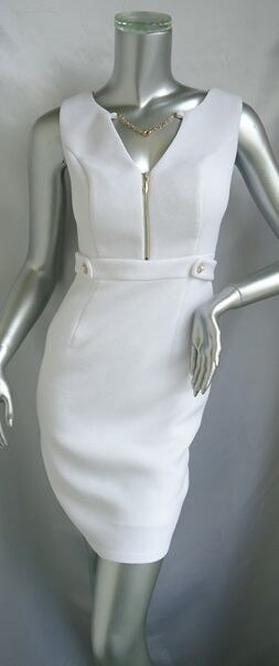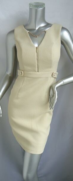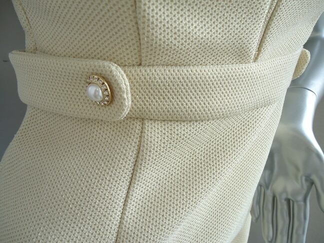 ウエストベルトの定番ワンピースに胸チェーン飾りが付きました。高級感のあるラメ入り生地で普通のム地とは違ったニュアンス。きちんとしたイメージと揺れるチェーン飾りで好印象まちがいなし。お仕事以外にも使える優秀ワンピース。少しストレッチがあるのもうれしいポイントです。